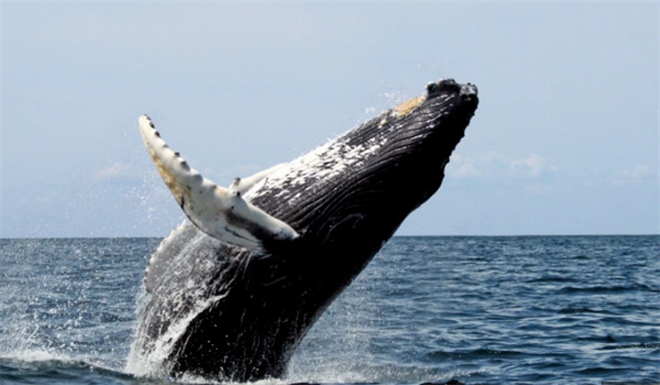 须鲸头顶有两个喷气孔,左右各一。当它们浮到海面进行呼吸时,会从这两个喷气孔同时喷出水汽,从而形成清晰可见的水柱。而齿鲸(像抹香鲸、海豚这类)仅有一个喷气孔。这一差异是科学家用来区分须鲸和齿鲸的关键特征之一。