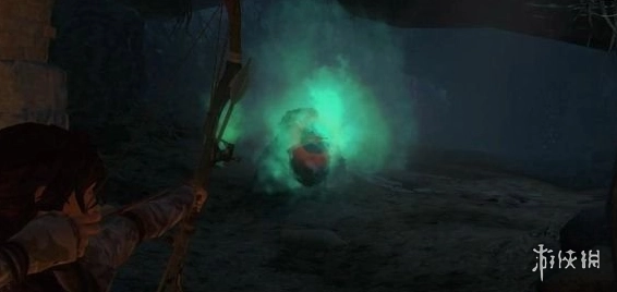 沿着石阶下行,游过水潭后,会抵达一处正泄露绿色毒气的区域。此时,朝着绿色气体射出火焰箭,爆炸产生的冲击力会暂时驱散毒气,你便可趁此机会迅速通行。