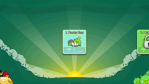 这里需要注意的是:每关所使用的鸟儿越少,评价将会越高,获得的分数越讲越多;并且越往后的关卡可使用的小鸟越来越少、小,并且保护猪头的障碍物也将越来越复杂。