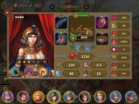 2、第一个线路,比较平滑。大致为,开始推战役,获得汉尼拔后点勇猛到5~6级或者大汉帝国通关获得霍去病,点后勤到5~6→打第一时代的征服,获得骑士盾→买一个金币将蒙特祖玛补充输出→打过除了附加关的中世纪全部关卡→入李世民→过附加关(圣骑士甲给霍去病后,他能威风很多)→20建麦地那出萨拉丁,后勤到5-6→通所有关卡