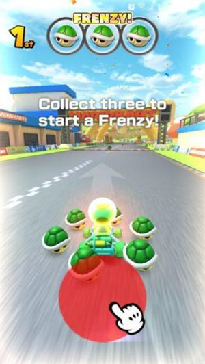 一开始听到《Mario Kart Tour》在手机上推出,本来还有点担心操作上会不会有点困难,但结果却出人意料的易上手,因为车辆是自动前进,基本上玩家只需向左或右扫来转弯或飘移,而点击是放道具,更为进阶便是向前或向后扫来向前或向后发射道具(如龟壳及蕉皮等)。