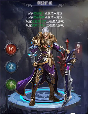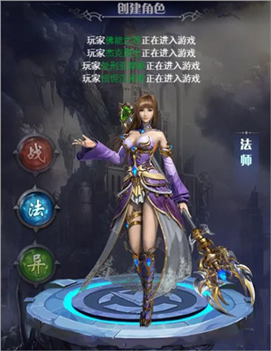 进入游戏前,目前共有三个职业可供选择,每个职业属性和技能侧重不一样,一旦选定,之后不能修改。