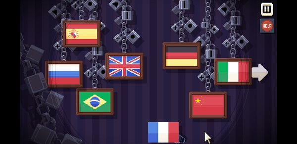 5、用螺丝刀(字母T)拧掉4个螺丝,点击地毯翘起的角,捡起钥匙,然后画面移到最左的“国旗”,用钥匙解开法国国旗(蓝白红)上方对应钥匙的锁,获得法国国旗。