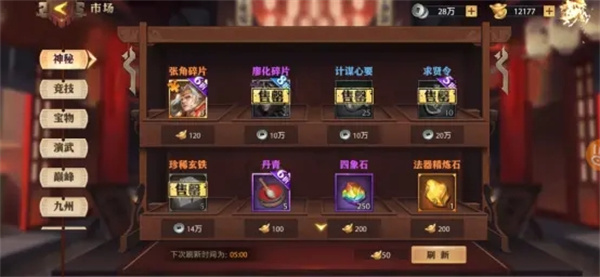 银币不要只拿来升级统兵等级,优先购买神秘商店里各种可以用银币购买的资源,除了进阶材料积累超过40个后可以不买,其他的建议前一个月都全买,即使是垃圾武将的碎片。