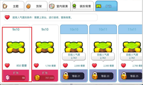 1、快速提升人气:买店内装饰、店外装饰、店员换装。用红宝石购买的物品有更高的人气值,而人气值大家都知道,升级店铺面积、提升营业额等等都少不了它。