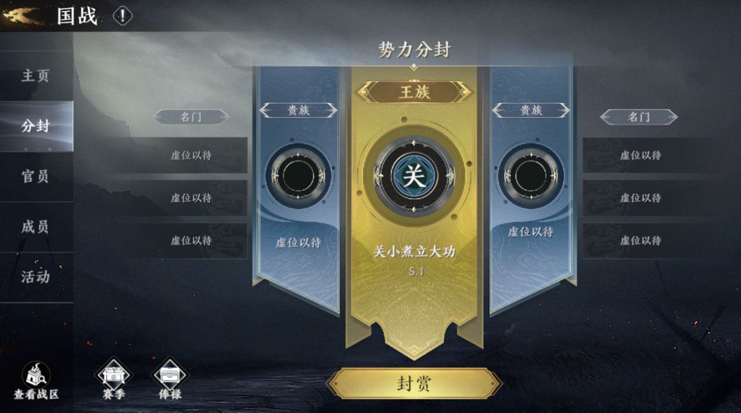 在这个国家中,社会结构划分为四个阶层,分别为王族、贵族、名门以及平民。其中,王族与王族势力相对应,贵族与诸侯势力相对应。名门阶层的形成,是通过分封这一途径达成的。至于平民,他们属于未经过分封的势力范畴。依据阶级以及国家统治力榜单所排出的名次,国家里的所有势力都能够获取与之对应的俸禄以及赛季奖励。