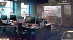 ⑧ 前往「左房间」的光碟机处进行解谜,留意柜子上的股市表、桌上萤光棒的长度以及条纹的数量。