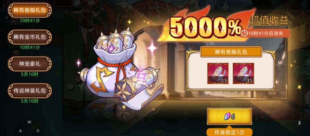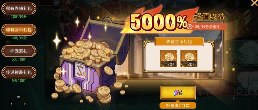6元 = 30张抽奖券,和游戏中其他限时礼包相比,还是比较划算的。