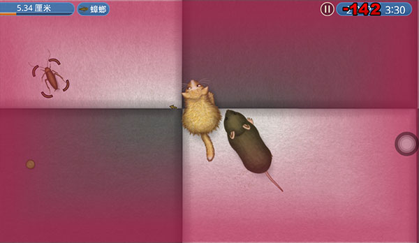 4、轻触屏幕,猫就会移动到相应位置,吃掉比它小的东西,比如蟑螂、豌豆。