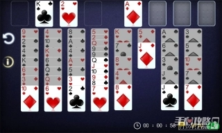 2、【卡牌空格】请小心挪动您的牌,使其形成长线。从以下八列中移动卡片,以创建四叠卡片。