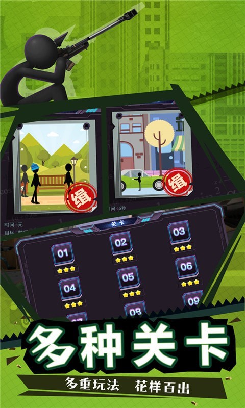 1. 每个射击关卡都设定了特定时间,需合理使用各类杀伤力强劲的武器装备,精准狙击对手。