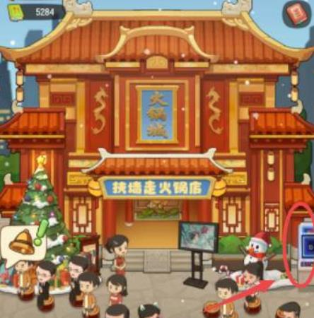 1、玩家只需在图中画圈的位置,也就是火锅店旁边,点击一下游戏机图标即可。