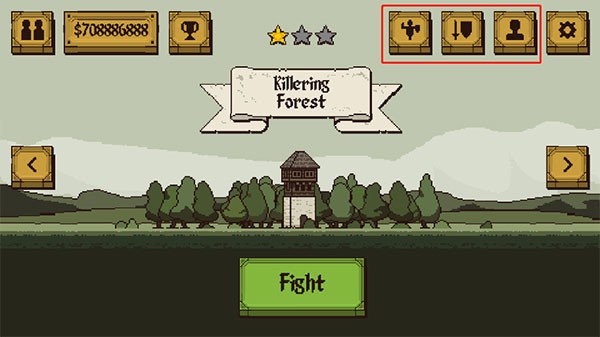 2、点击中间的“Fight”,就能开启游戏。页面上方从左至右分别是训练场、武器、人物。