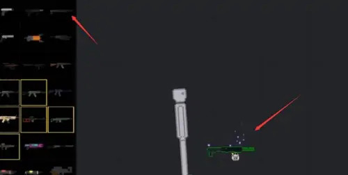 使用鼠标拖动枪,慢慢把枪拖动到手里,手部会有绿色的线框,证明已经是合适的位置了。