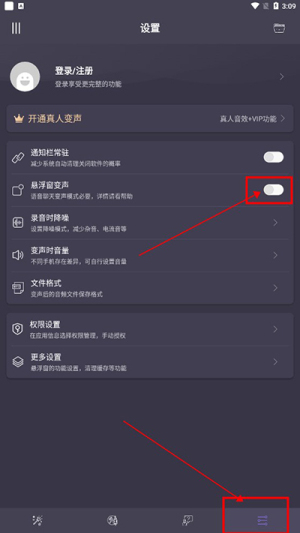 4、若要开启“语音聊天变声模式”,只需开启“悬浮窗变声”功能即可。