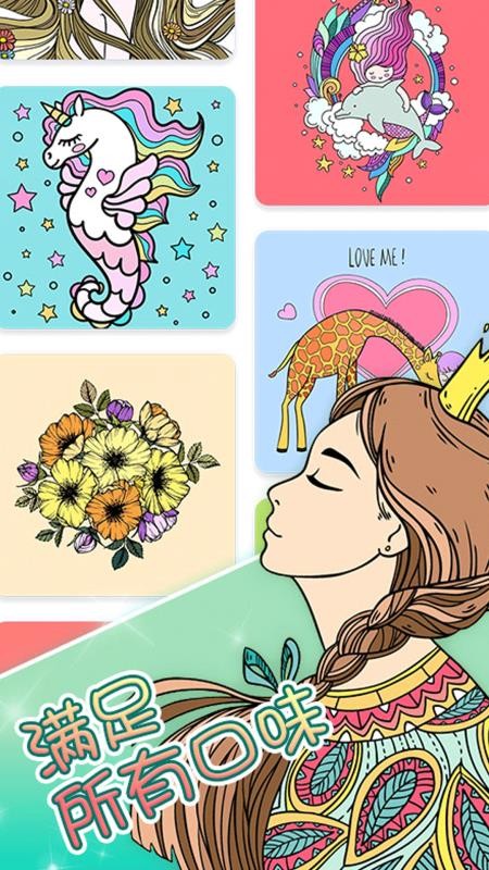 2、在此处,会呈现出五彩斑斓的各类图片,用户在线时能够随心挑选,并自由进行填涂。