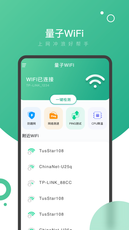 量子WiFi是一款手机端的网络管理软件,它能帮助用户管理自家WiFi,实现测速、解锁等一系列操作。用户还能依据自身使用需求在软件内进行调节,查看WiFi详细信息,提升连接安全性,非常实用。感兴趣的用户快来体验使用吧!