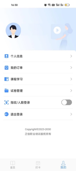 回到首页,点击“我的”, 可以查看个人订单和学习情况。
