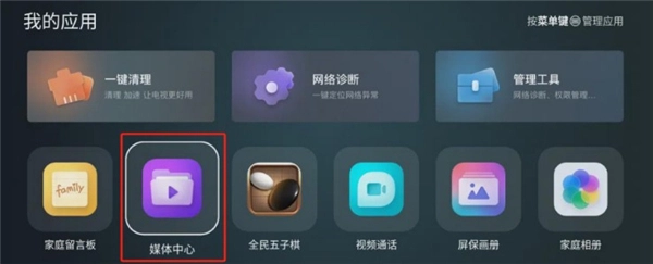 媒体中心安装方式:媒体中心是系统自带应用,打开以后找到U盘,点击进入后找到apk文件,安装即可