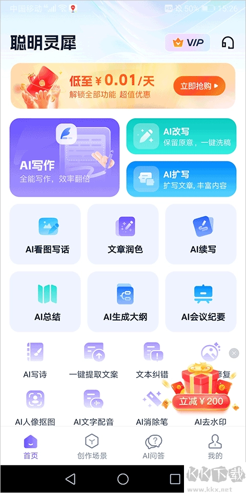 1. 打开聪明灵犀手机版,选择相应AI功能并点击开启。
