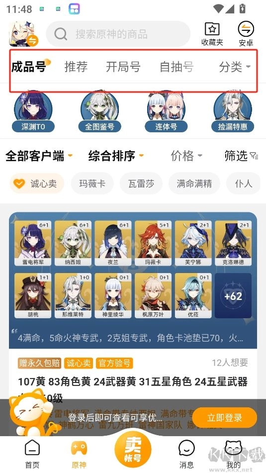 涵盖《三国志战略版》、《晶核》、《王*者荣耀》、《原神》、《逆水寒》、《三国杀》、《崩坏:星穹铁道》、《明日方舟》、《斗罗大陆》、《崩坏》、《梦幻西游》等8000+款热门游戏,毕业脱坑账号低价捡漏。