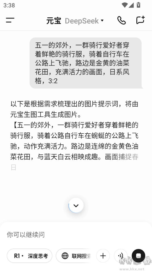 1. 开启腾讯元宝后,径直输入对画面的要求,就能生成图片。