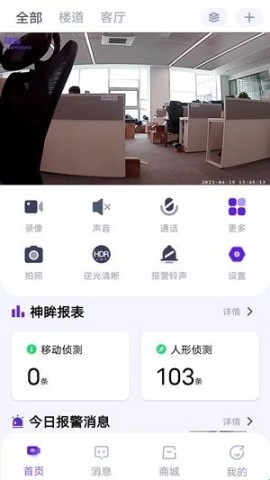 2、应用内提供移动侦测、人形侦测等报表,让你轻松了解报警数据,一目了然。