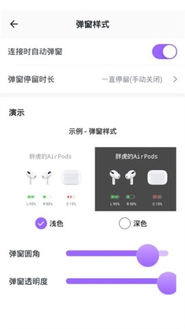 6、每次耳机连接时,都能自动弹出电量提示窗口,无需担心电量不足的烦恼。