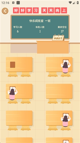 3、每个阅览室又被细分为很多个小班,用户可以自由选择进入,门上的数字表示当前已进入的人数。