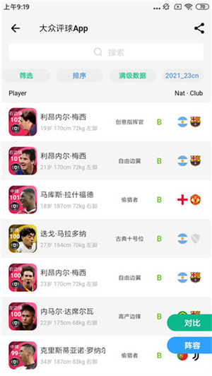 4、专为热爱足球的朋友设计;大众评级应用允许你在手机上轻松查看和比较足球能力值;