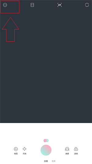 1. 开启轻颜相机,点击左上方的三个小点。