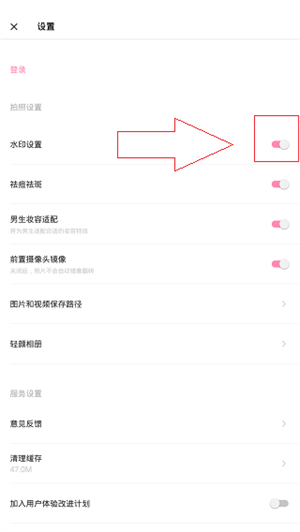 3、找到并关掉"水印设置",这样拍出来的照片就没有水印啦