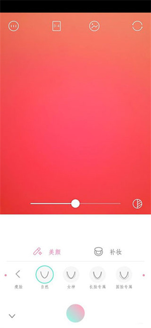 2、美颜功能也很强大,可以根据不同的脸型直接按推荐选择,也可以自己调整瘦脸,还有补妆的功能都比较自然。