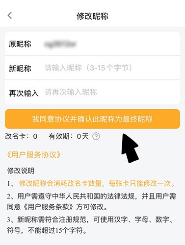 5、输入修改昵称的相关内容急就修改好啦(注意现在的修改名字都要拥有修改卡才能修改哦)。